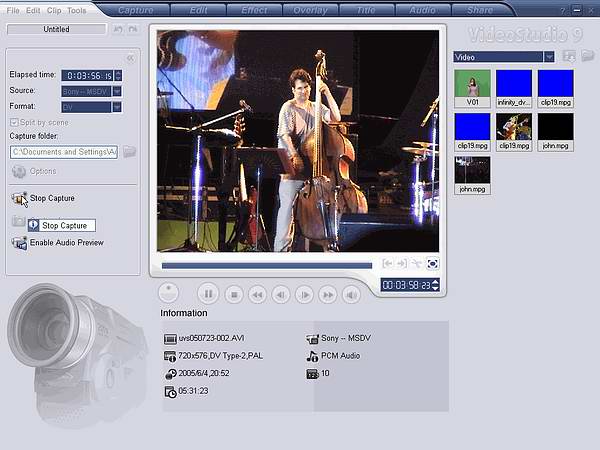 หมายเหตุ : การจับภาพแบบ DV Type-1 หรือ DV Type-2 (จากกล้องวีดีโอดิจิตอล) หรือจับภาพแบบ MPEG (จากกล้องดิจิตอลหรือจากอุปกรณ์อนาล็อก) จะมีข้อจำกัดเรื่องขนาดไฟล์ที่ 4 GB ใน Windows 98 SE และ Me ที่ใช้ระบบไฟล์เป็น FAT 32 ขณะที่จับภาพ เมื่อขนาดไฟล์มีขนาดใหญ่กว่า 4 GB โปรแกรมจะสร้างไฟล์ใหม่ให้โดยอัตโนมัติ ส่วนใน Windows 2000 และ Windows XP ที่ใช้ระบบไฟล์เป็น NTFS ไม่มีขีดจำกัดเรื่องขนาดไฟล์ในการจับภาพ